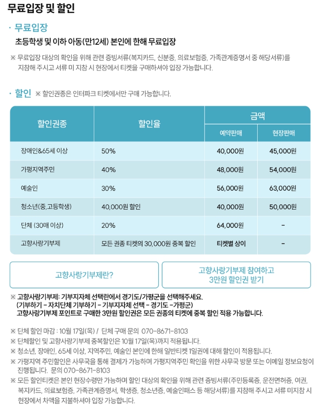 무료입장 및 할인