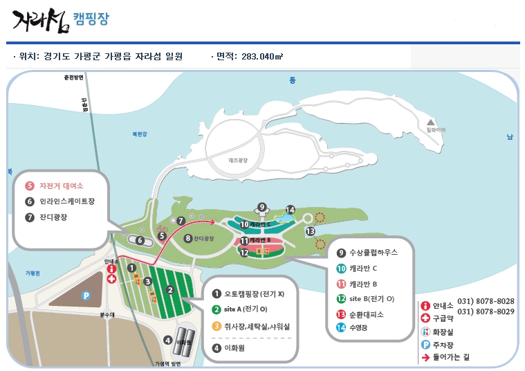 서울에서 자라섬까지 약 1시간 30분 소요 (주차공간 협소 / 대중교통 권장)
